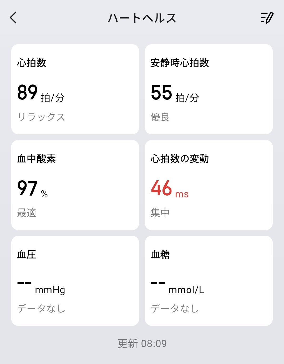Zeppアプリでは計測したデータを自動的に収集してくれるのが便利。計測した指標をただ表示するのではなく、その状態が良いのか悪いのかをわかりやすくスコアリングし、正常や良好のものには緑色の◯をつけて表示してくれます。健康管理の初心者でも、どの数値に注意すべきかが一目で分かるようになっているわけです。