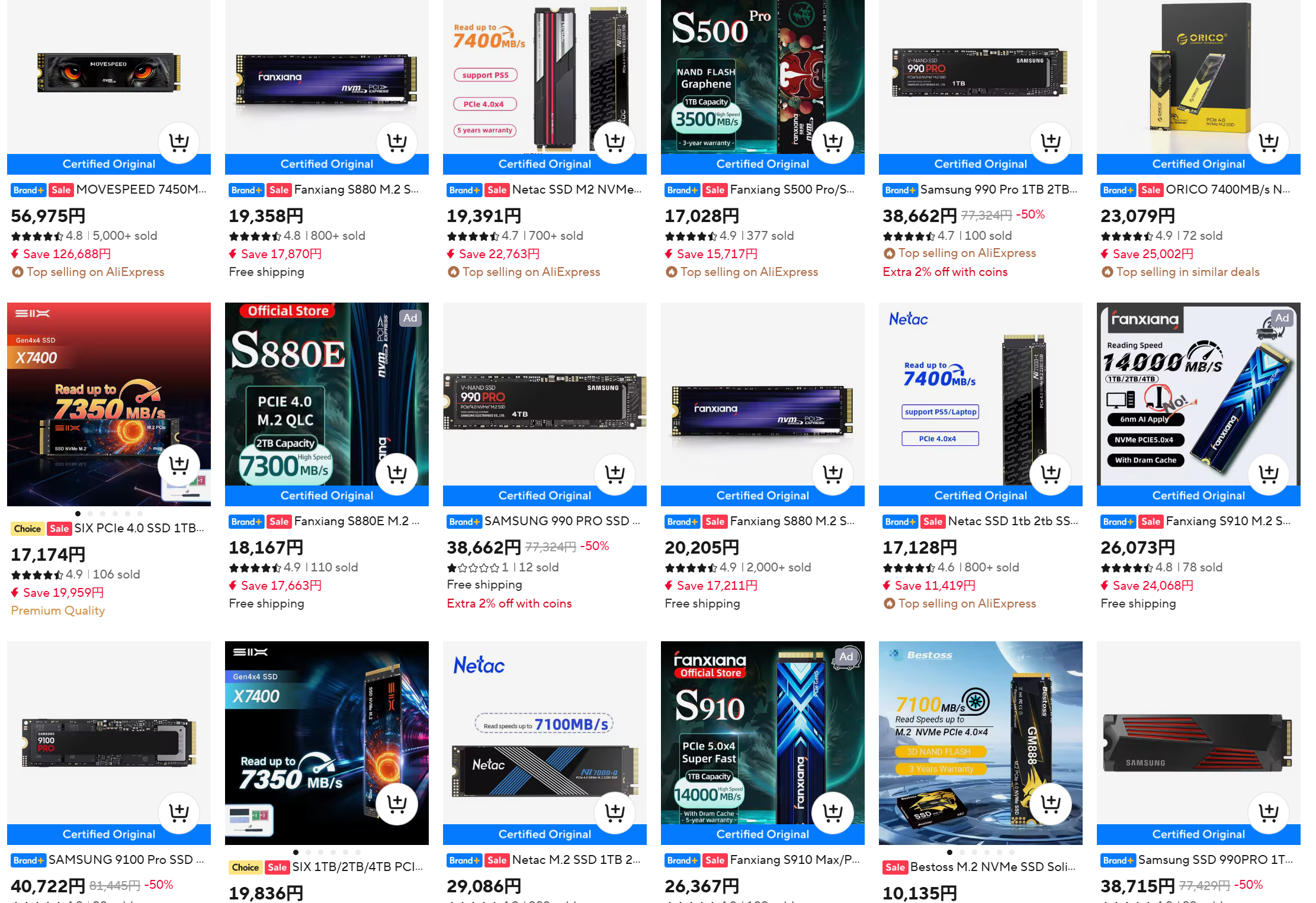 SSD編:半年で1万円以上の値上がり、AliExpressで4TB SSDを調達