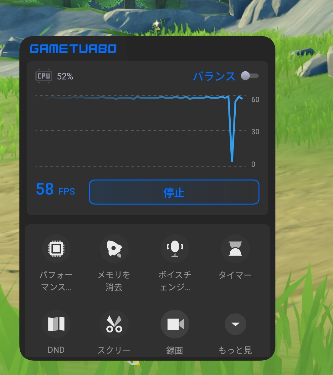 なお、原神などのゲームを起動した際には、自動的にXiaomi HyperOSのGAME TURBO機能が有効化。リアルタイムのパフォーマンスを確認したり、メモリの最適化やタイマー、ボイスチェンジ、スクリーンショット/録画の撮影機能に加えて、ゲーム中はDND(Do Not Disturbモード)への切り替え機能も利用が可能でした。ゲーム時はバッテリーの消費は多く、高グラフィックの状態であれば右肩下がりに近い消費量になりました。