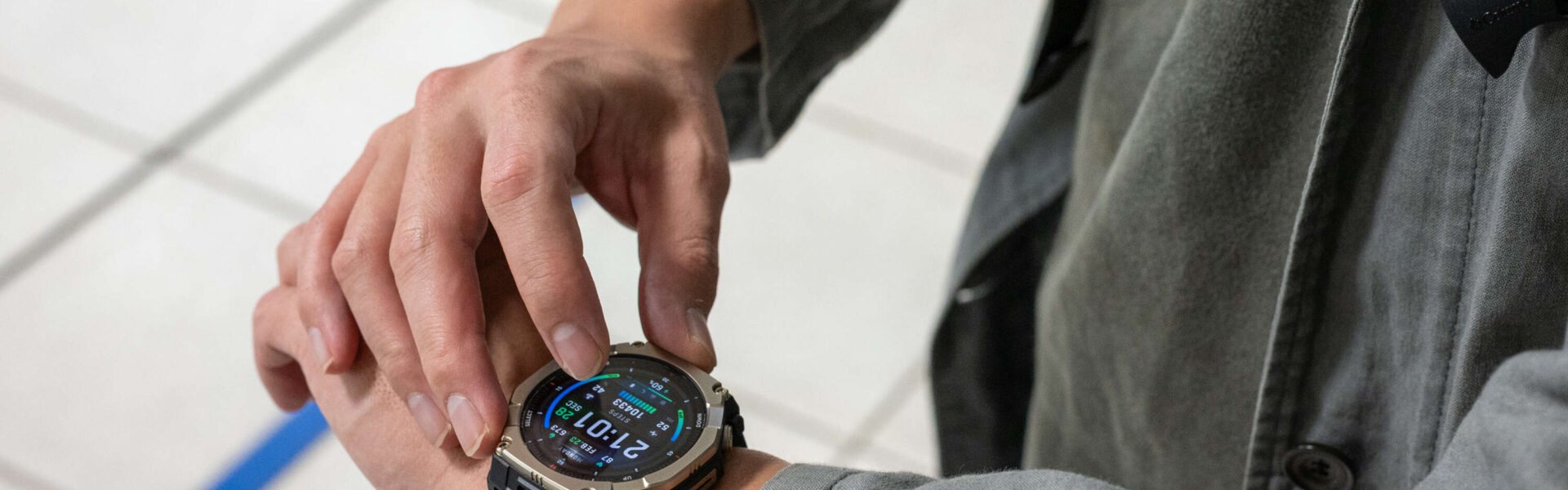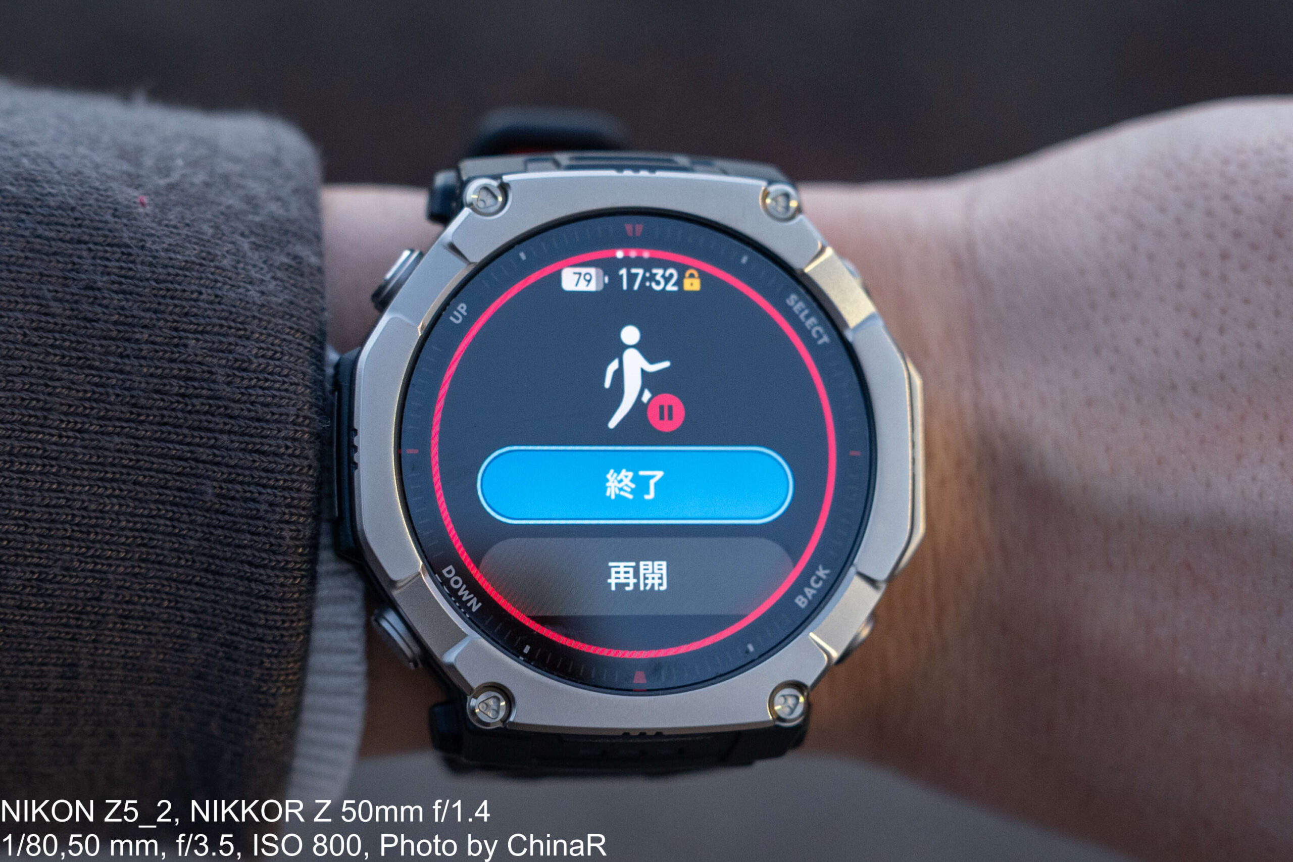 Amazfit T-Rex Ultra 2は1.5インチ480×480解像度のAMOLEDディスプレイを搭載し、最大輝度は3,000nitを実現しています。実際に銚子の直射日光下で使用してみたところ、「意外と見える」という印象でした。強い日差しの中でも文字盤の情報がしっかりと視認でき、屋外でのスポーツ使用でもストレスなく情報を確認できます。