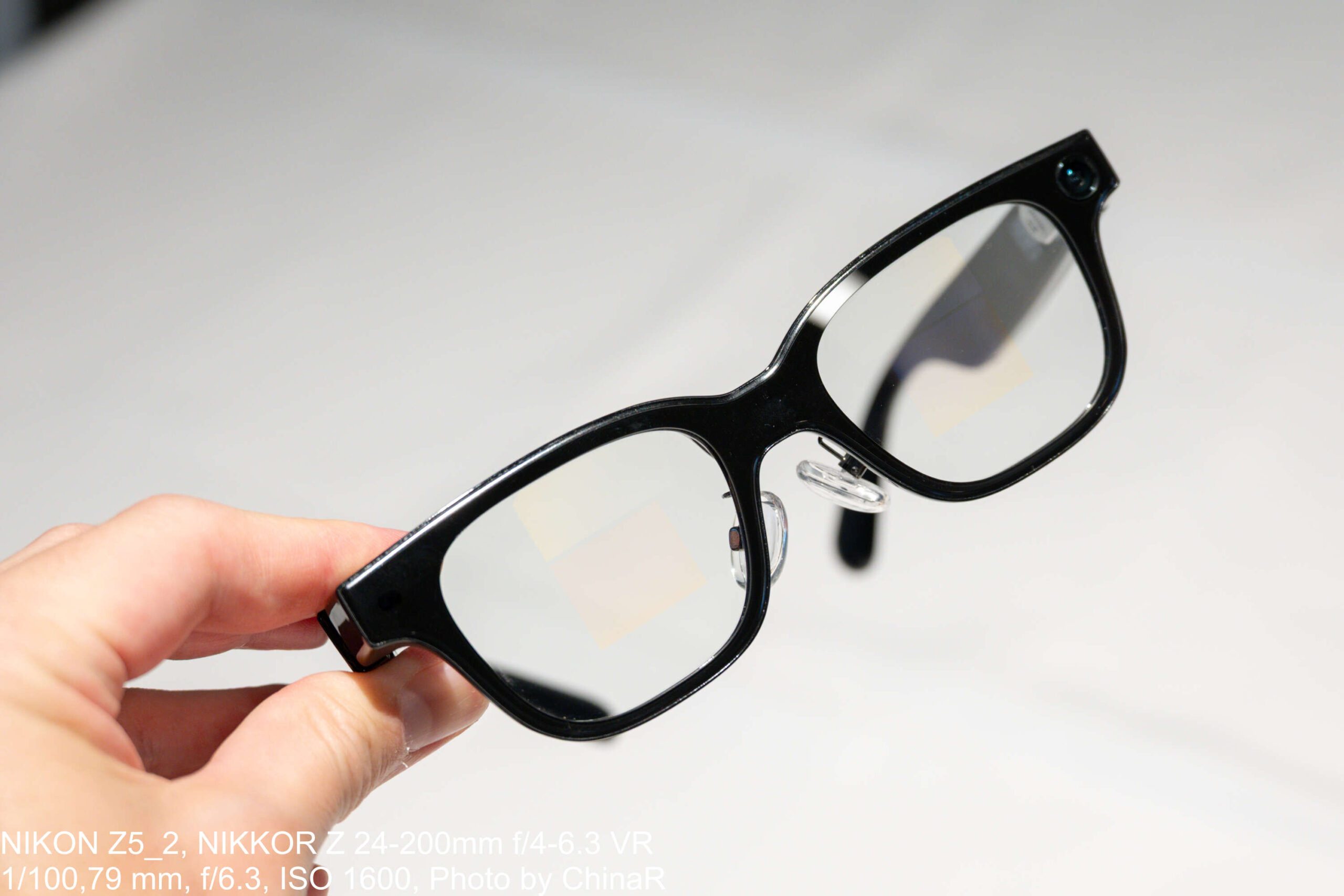 実際に使っている様子を至近距離から見てみてもなにか画面が表示されているようには見えなかったものポイント。音声操作は声を出しているので外からわかるのは当たり前ですが、プレゼンなどで原稿をRokidスマートAIグラス上で表示しているときでも外からは分からないというのは印象が良いと感じました。