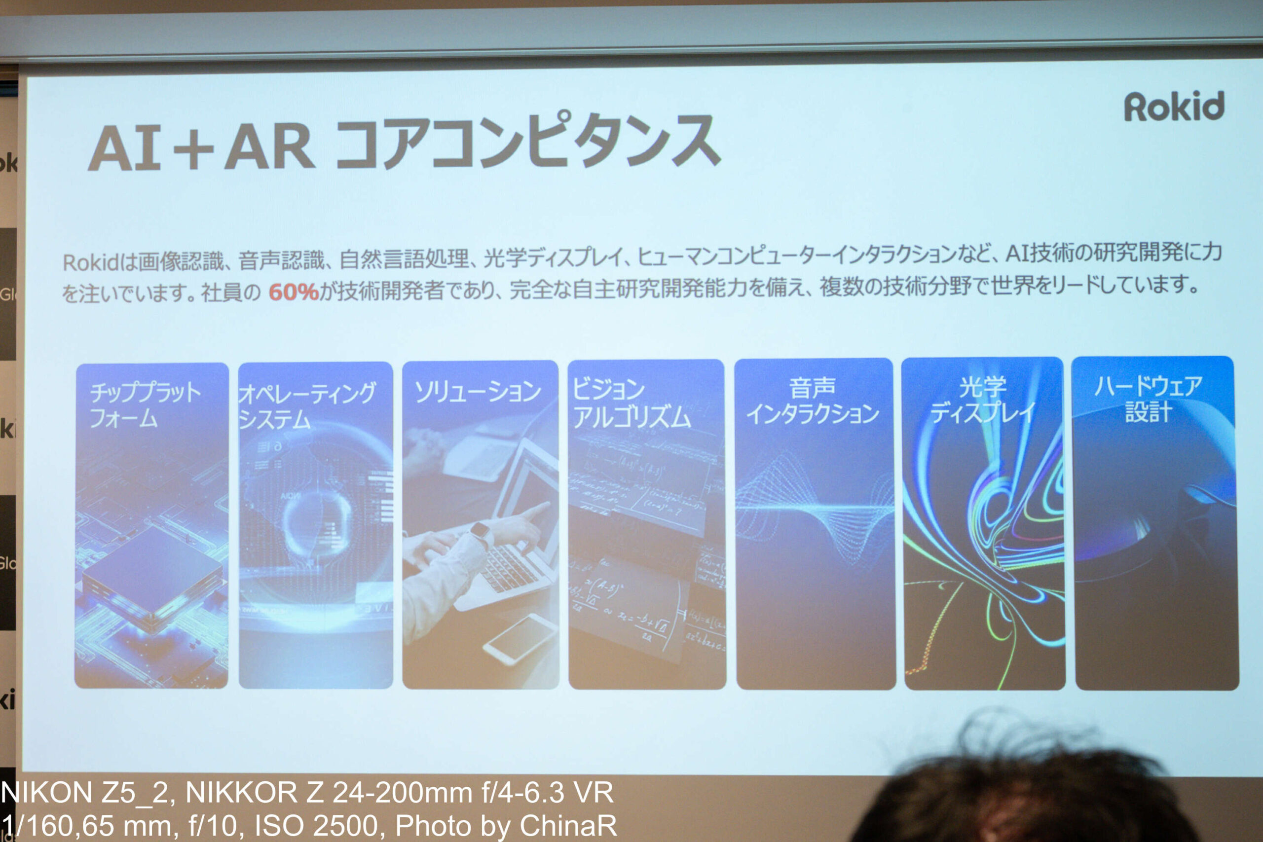 Zoro氏が特に力を込めて紹介したのが、視覚・聴覚障がい者や高齢者への活用事例。ピアノ調律師のCai Xuhui氏がRokidグラスを日常のコンピューターとして使用しているエピソードや、視覚障がいのある子供が自然を探索するために活用している映像は、スペックだけでは伝わらない「人の生活を変えるウェアラブル」という側面も提示。製品ローンチだけでなく日本における生産性革命の新時代を目指すという壮大なテーマを感じさせられました。