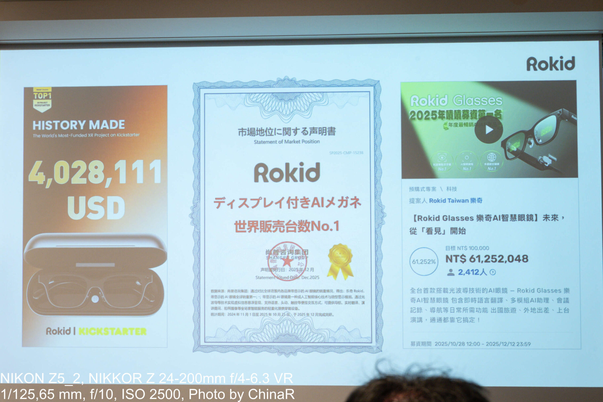 Rokid,Inc.の500名以上の従業員のうち60%以上がR&Dエンジニアというスペシャリスト集団で、100カ国以上での販売実績・累計ユーザー100万人超を誇るのもポイント。AI企業として唯一ジュネーブ国際発明展の金メダルを受賞し、CES Innovation Awards、iF Design Award 5度受賞と国際的に評価されています。KickstarterおよびZJプラットフォームではAIグラス史上最高額の資金調達にも成功しているんだとか。6ヶ月でユーザーインタラクション2,000万回超というデータとともに、ディスプレイ搭載AIグラスの世界販売台数No.1(2025年12月調べ)という実績もなかなかのものです。
