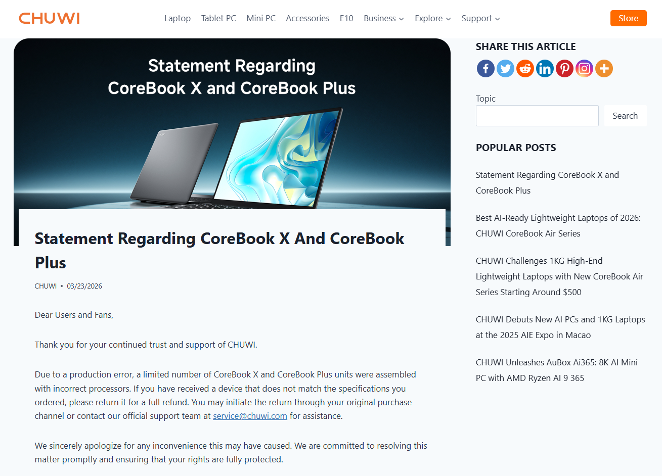 CHUWIは3月24日に「生産上のミス」と声明を出しましたが、「新品同様の状態」での返品という厳しい条件付きで消費者に対しての誠実さは感じられないものでした。NotebookCheckへの記事削除要求と法的脅迫も報じられており不誠実な姿勢は何も変わっていない印象。AMDは「いかなる関与も黙認もしていない」と声明しておりCHUWI側のサプライチェーンに問題があったというのは確実なはず。5年前から変わらない「非を認めず法的圧力で黙らせる」という姿勢を感じさせられます。
