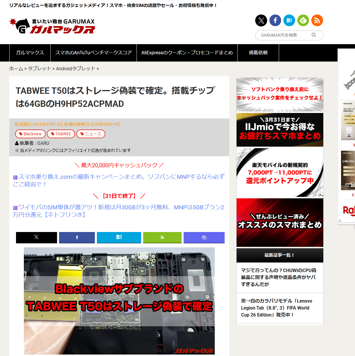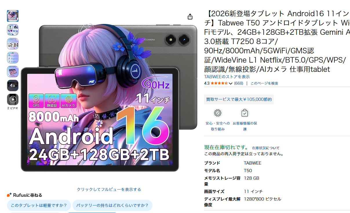 2026年1月、ガルマックスがBlackview傘下TABWEEの「T50」を検証し、128GB表記のストレージが実際には64GBしかないことを発見したのも記憶に新しいはずです。レビュー提供品で異変に気づき、自費購入品でも同一の結果を確認。メーカーに検証を依頼すると「時間の無駄」と一蹴されたとのこと。