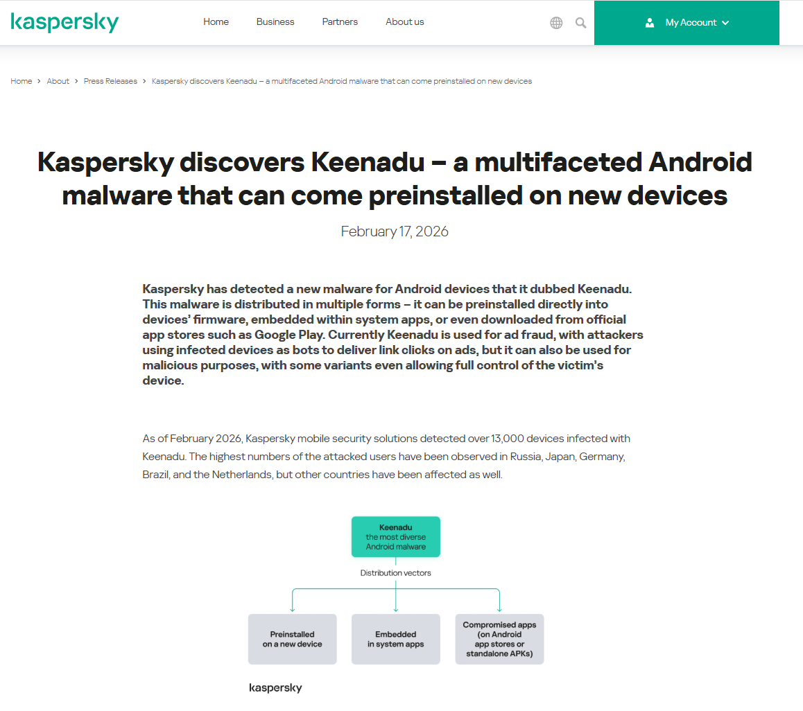 - Kaspersky discovers Keenadu – Kaspersky公式プレスリリース
