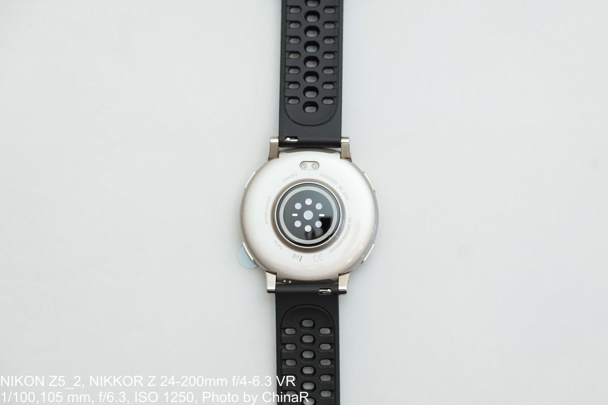 裏面にはBioTracker 6.0 PPG生体センサー(5PD+2LED)を搭載しています。心拍数、血中酸素飽和度(SpO2)、体温、呼吸レートなどをリアルタイムで計測可能。センサー部はやや凸形状で皮膚との密着度を高めており、ランニング中の激しい動きでも安定した計測を実現しています。