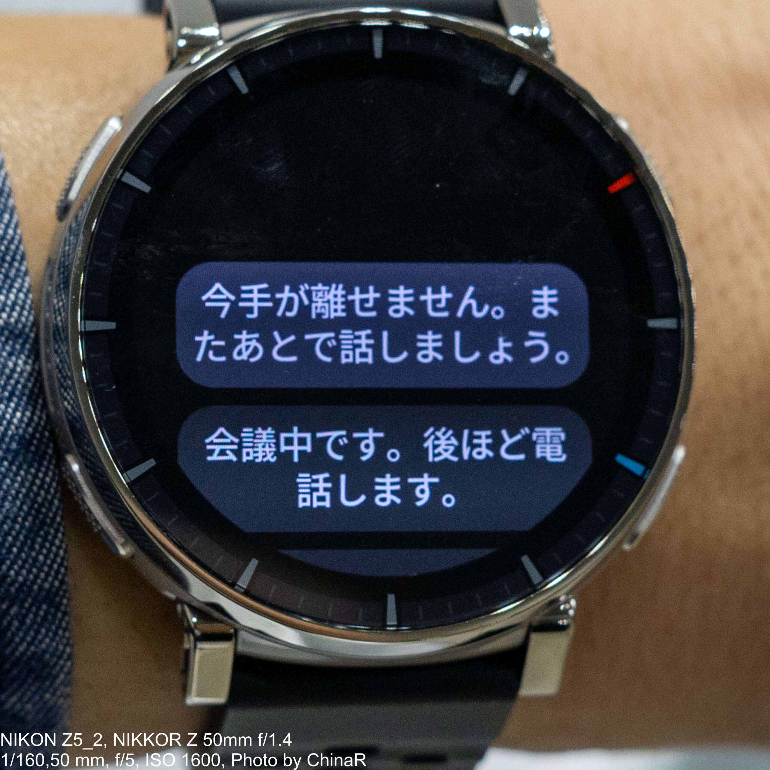 スマートウォッチでは一般的な簡易返信機能も搭載。「今手が離せません。またあとで話しましょう。」「会議中です。後ほど電話します。」といった候補をあらかじめ設定しておいて、これを選択できるようにしているものですが、前述のZepp Flowによる自動生成や、音声入力で大抵の内容の返信は作成できてしまうので、「OK!」などのような定型文を返信するのに使うくらいな印象です。