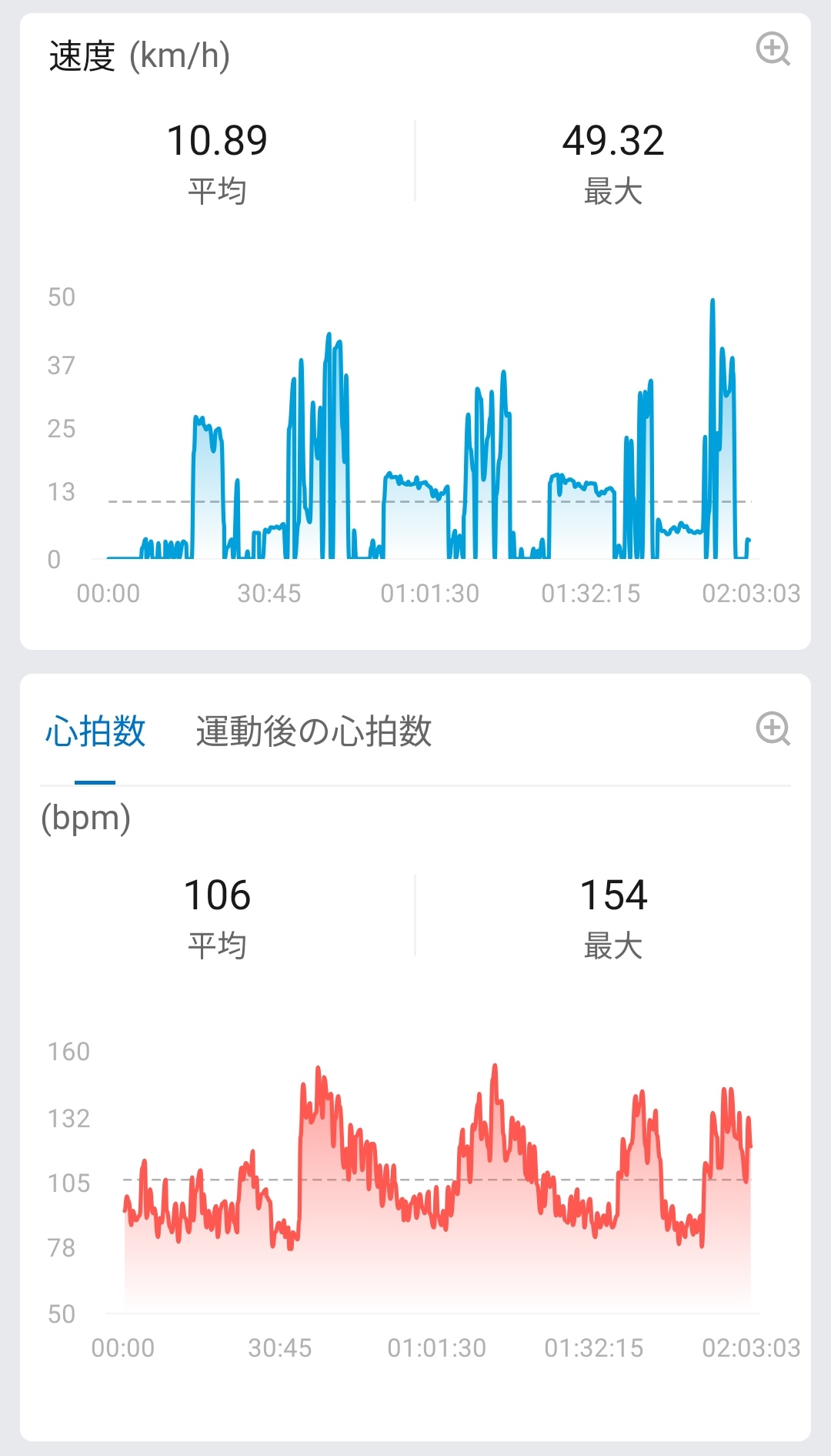 当時の気温や湿度、風向/風速のデータも合わせて取得してくれてそれも表示してくれているのも粋で、その際のゲレンデコンディションも含めた振り返りが出来るようになっています。心拍数の推移や標高、そして速度の推移も見えるようになっているのも自身の滑りがどうだったかをひと目で確認できていい感じでした。