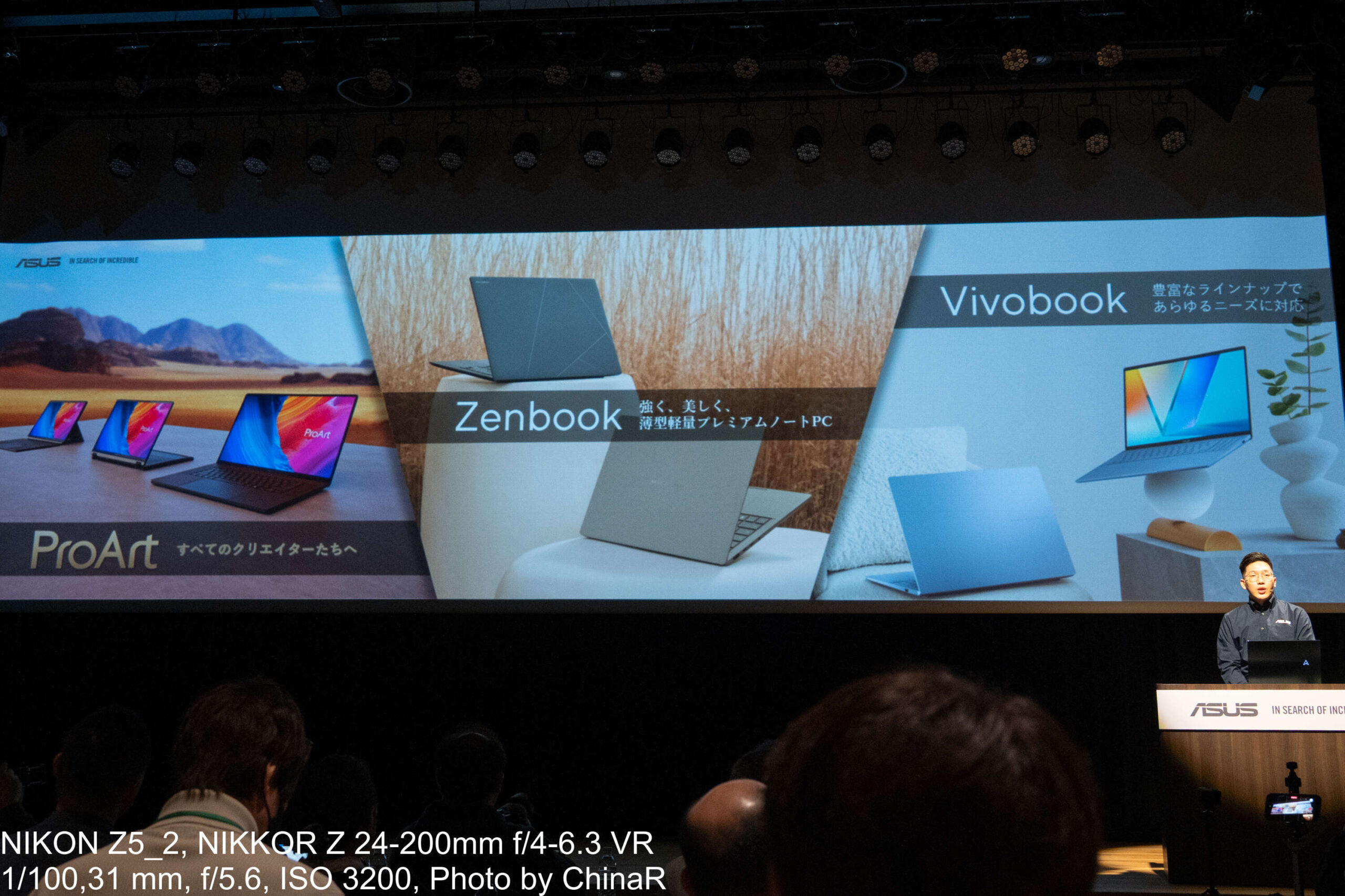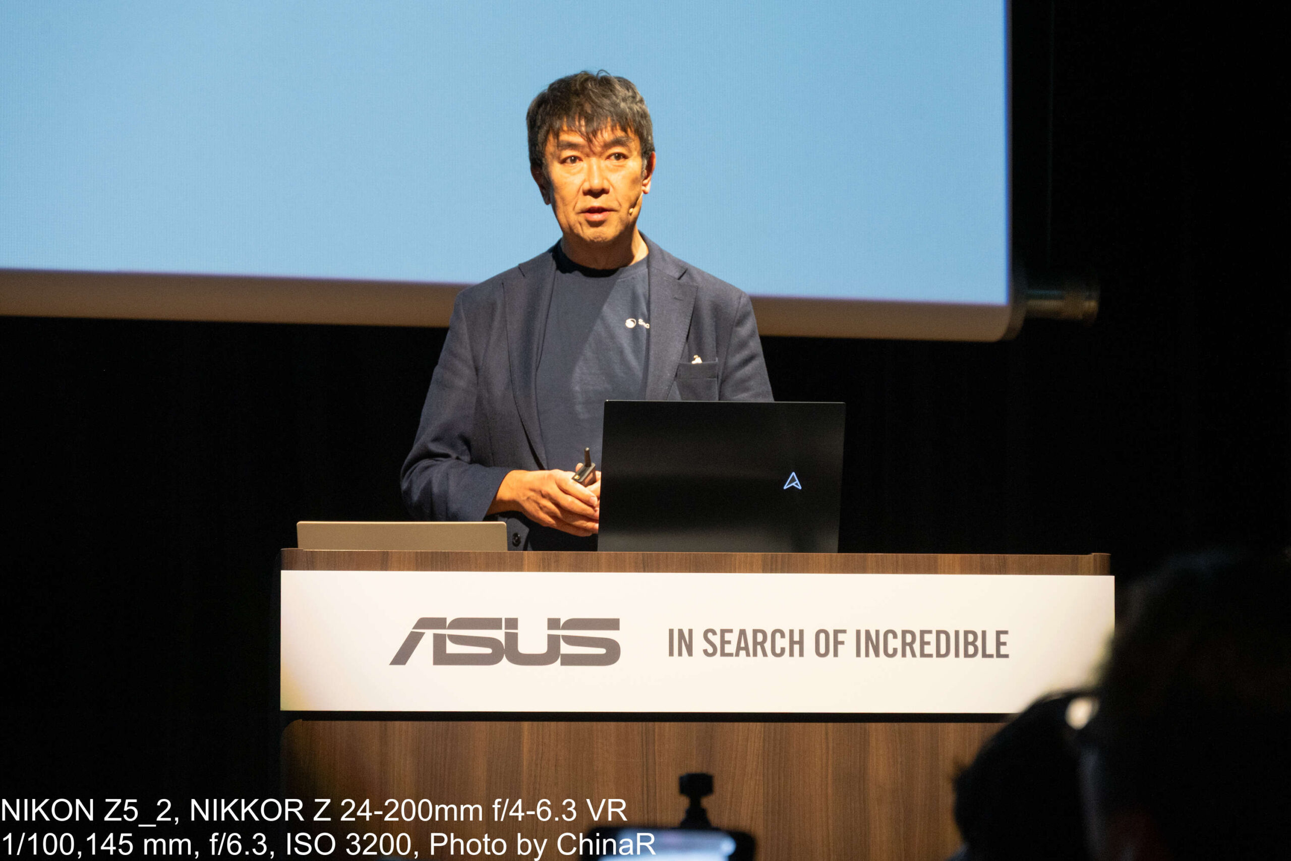 続いてシステムビジネスグループ・コンシューマービジネス事業部・ノートPCプロダクトマネージャーのLeon Chen氏が登壇し、ASUSのコンシューマーノートPCのラインナップと戦略を説明。スライドでは「ProArt(すべてのクリエイターたちへ)」「Zenbook(強く、美しく、薄型軽量プレミアムノートPC)」「Vivobook(豊富なラインナップであらゆるニーズに対応)」という3ブランド体制を提示しました。