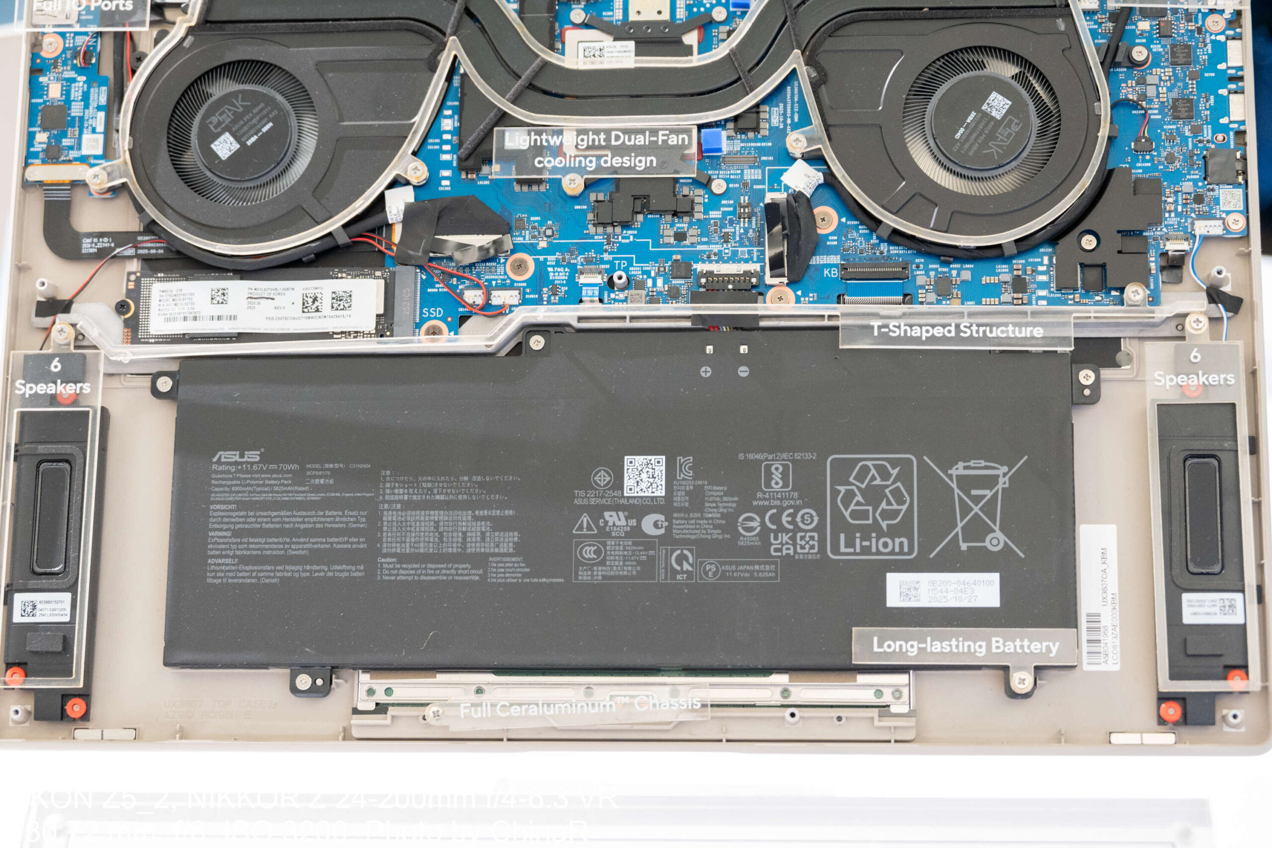 Zenbook SORA 16 内部構造展示:セラルミナム筐体・デュアルファン冷却・6スピーカー構成