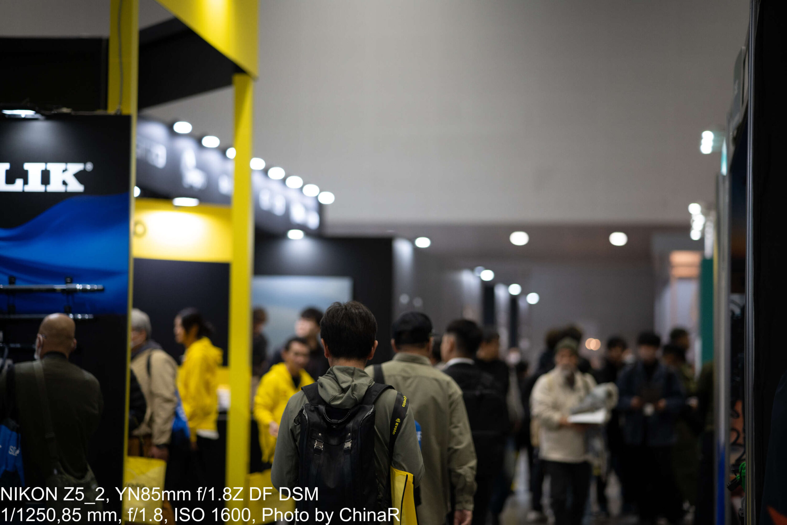 Zマウントフルサイズのもうひとつのラインナップが「YN85mm F1.8Z DF DSM」で、会場での確認では約45,000円という設定でした。50mmとともにZマウントフルサイズの主力として展示されており、Nikon Z5 IIに装着した状態で撮影も試してみました。スキントーンが自然で色かぶりも見られず、ISO1600という会場環境でもノイズが最小限に抑えられていました。価格も手頃で、サイズ感も程よいため、気軽に持ち運べるポートレートレンズとして楽しめそうな印象でした。