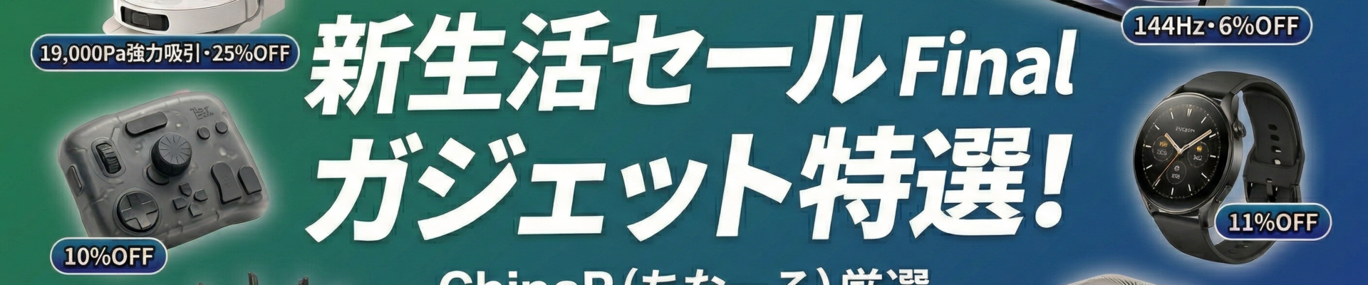 Amazon新生活セールFinal開催!19,000Pa吸引のロボット掃除機やWiFi 7対応ルーターなど、実機レビューで性能確認済みの厳選ガジェットを紹介。最大25%OFFのセール価格とポイント還元でお得に新生活をスタート。失敗しない買い物ガイドとして、ChinaR編集部が実用性を検証したアイテムだけをまとめています。