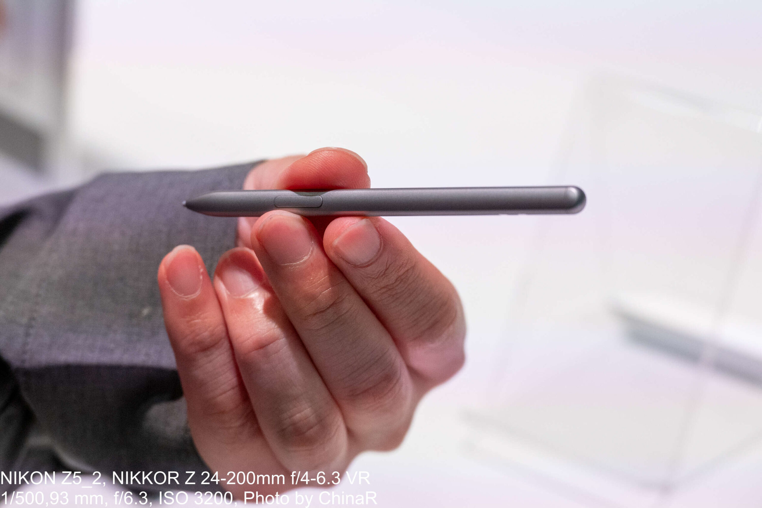 ケース側にペンを収納するため、写真のようにペンの長さはどうしても短くなり、また、細くなってしまう印象。ただ、ペンを別で持ち歩くことなく確実に収納することが出来るのでケースにはめる、というデザインは良く考えたなと感じられる仕上がりでした。充電はワイヤレスではなく端子に接続するようになっているため、前述の急速充電を可能としているようでした。