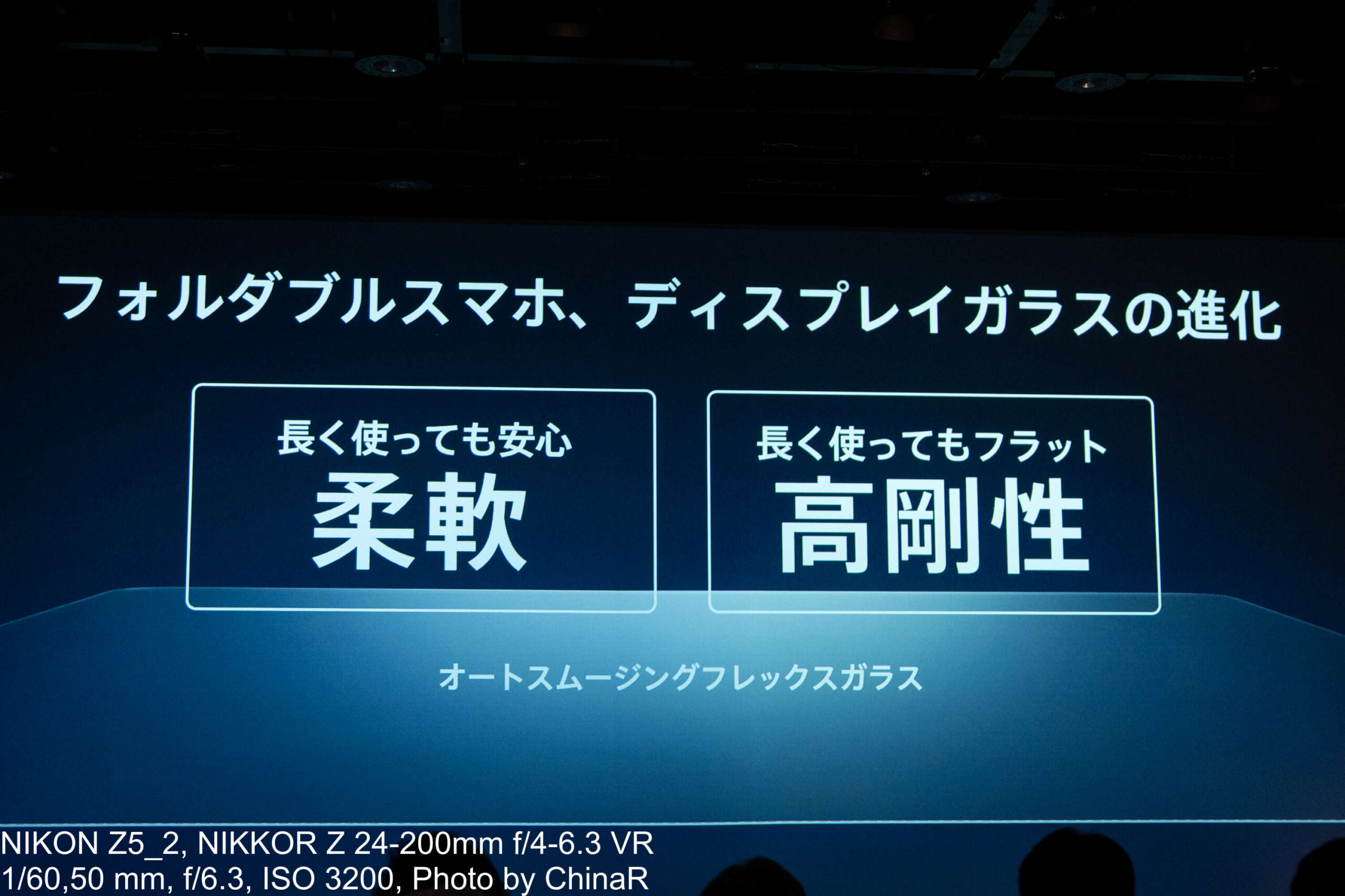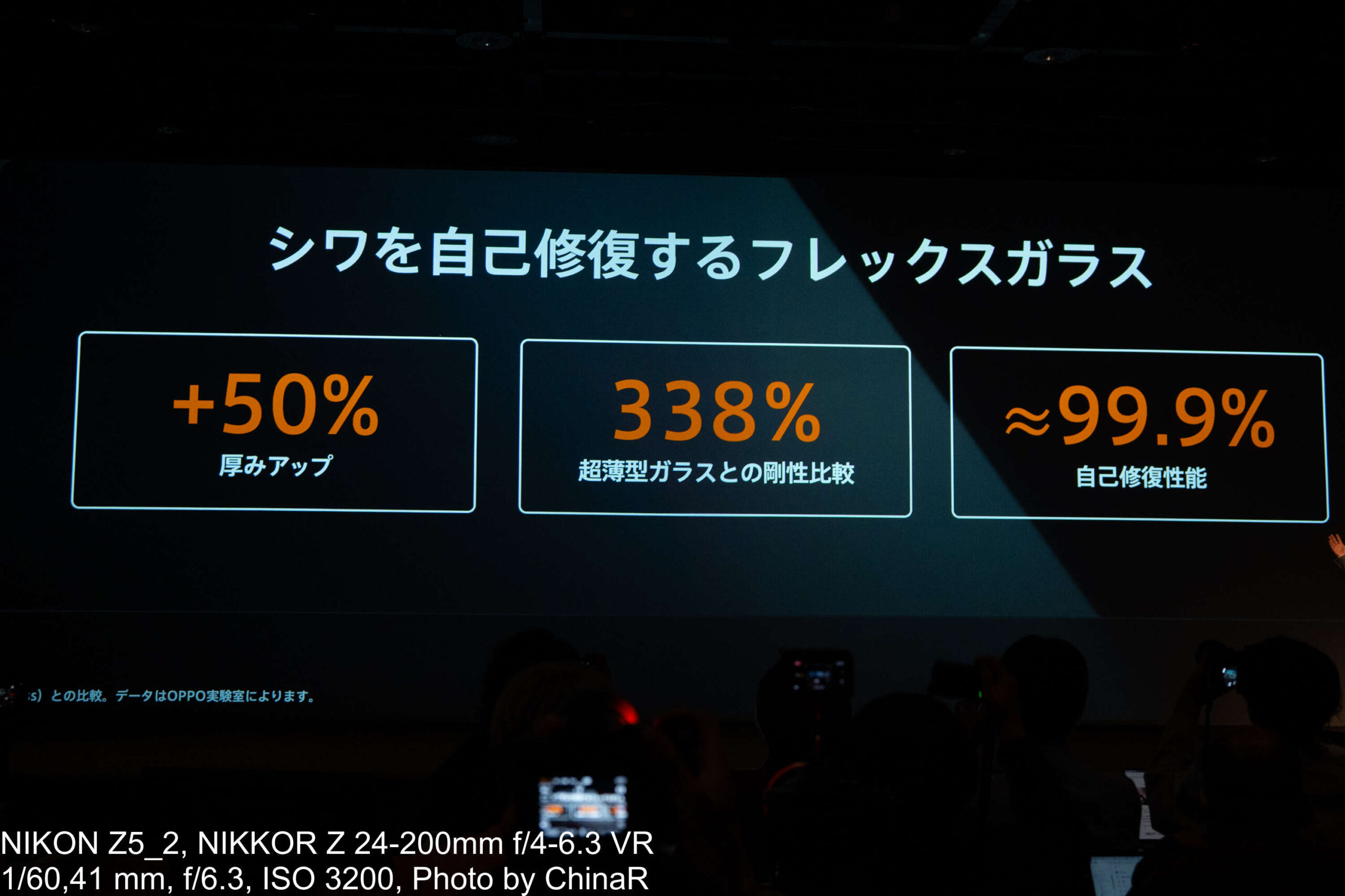 中国本社の成 蛟氏によれば、中国では実店舗での来店客が折り目付近を実際に触ったり、目で確認したりすることが多かったとか。折り目が見えると消費者は技術が成熟していないと感じてしまい、それが最終的にメインスクリーンに対する信頼性の低下につながってしまうと認識しているとのこと。この認識を踏まえて、ガラス自体の反発力をヒンジの力で打ち消す構造と、ガラスの厚さ、材質、製造工程、応力のすべての面を解決できるように製造工程全体で取り組んだとのことでした。