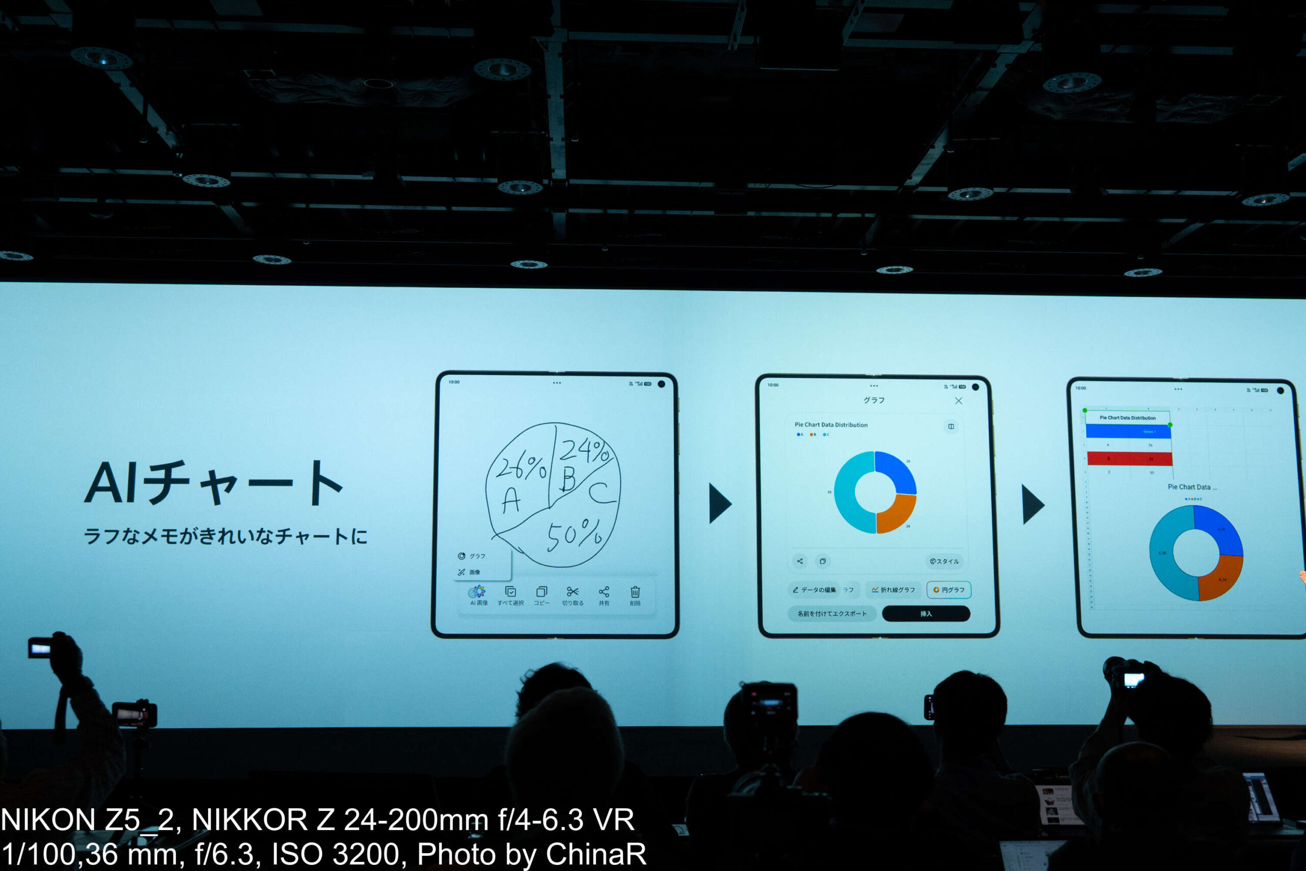 タッチアンドトライの会場でもラフに書かれた円グラフからきれいなグラフを生成する様子を試すことができました。実際に企画職として働いている今の私も、サクッとグラフを作ることはありますが、手書きから作る場面はなくどちらかといえば必要なときにはExcelを起動して数字を打ち込んで作る感じ。あまりデモのような場面は浮かばないものの面白い機能という感じです。