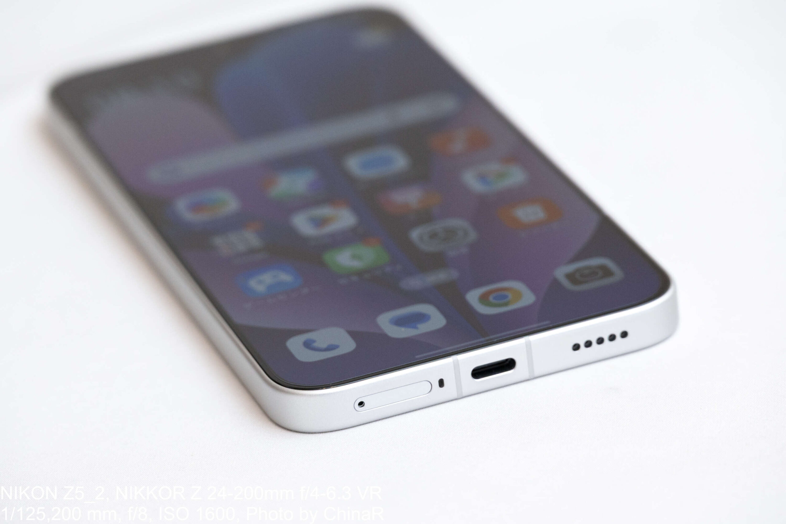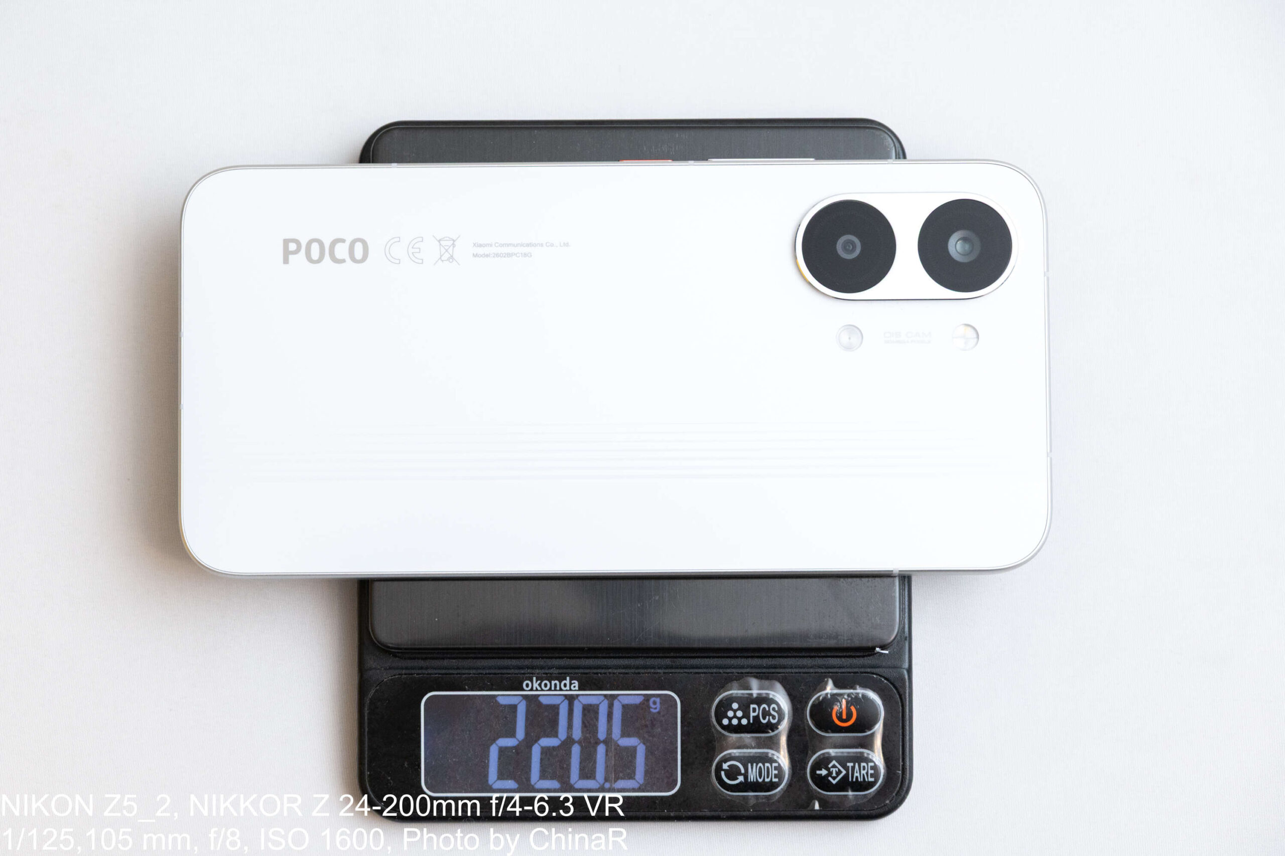 POCO X8 Pro Maxのサイズは約77.9×162.9×8.2mmで、重量は実測で220.5g。今回お借りしたカラーはホワイトで、シルバーがかった上品な発色を実現する仕上がり。背面はファイバーグラス素材を採用し、光の角度によって波状のテクスチャがふっと浮かび上がる仕掛けが目を引きます。表面には直線的なラインが細かく刻まれており、シンプルな白系ボディながら平板な印象に陥らず、しっかりと高級感を演出してくれるところ。