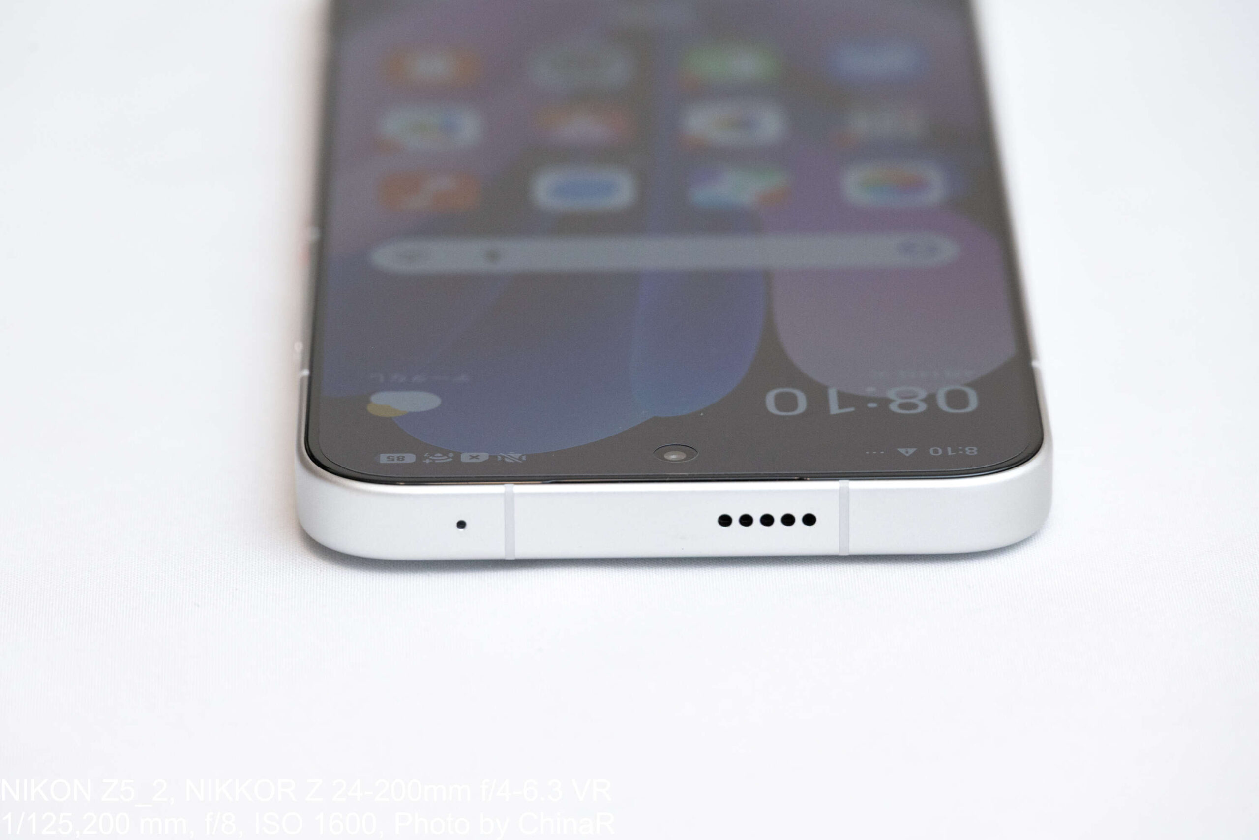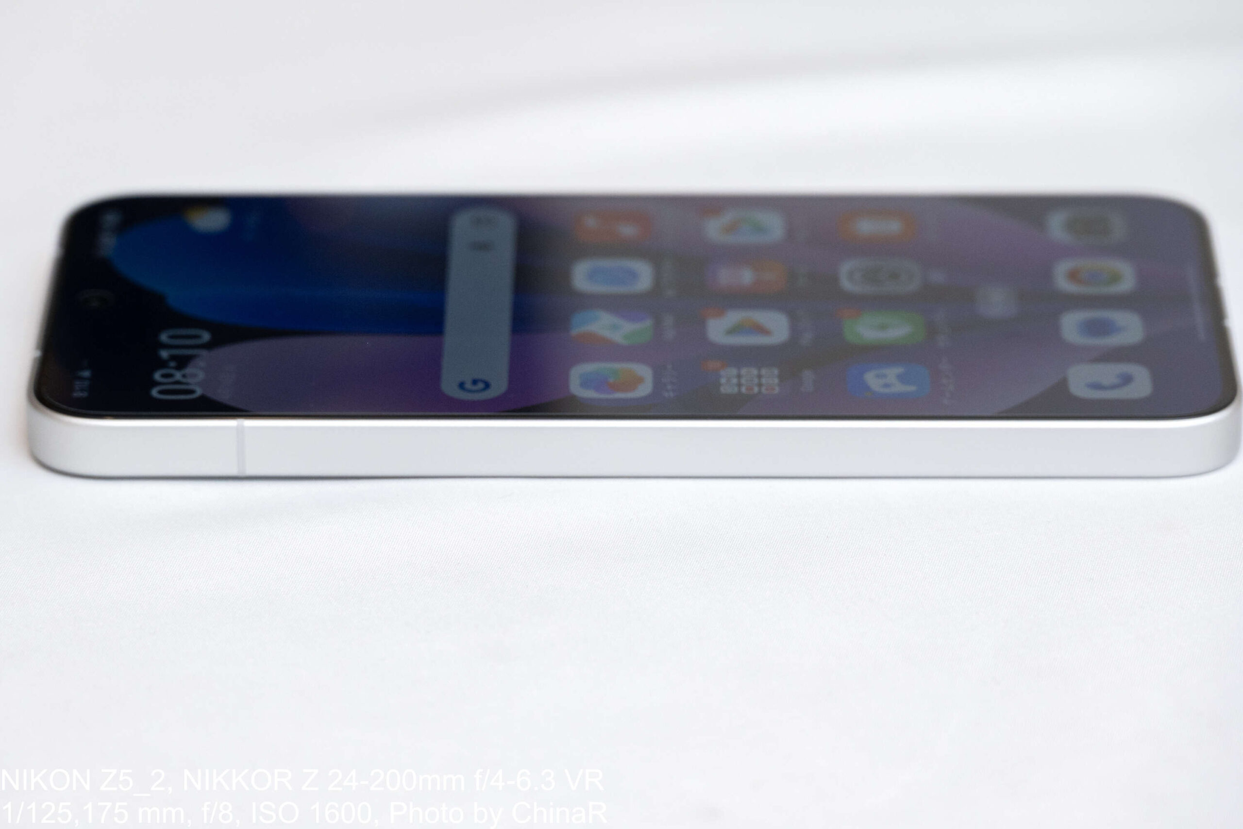正面から見ると、上下左右ほぼ等幅の極薄ベゼルが目を引く印象。6.83インチという大画面ながらフレームの主張を抑え、画面占有率の高さによって没入感を確保しています。斜めから覗き込んでもベゼルとフレームの境界線が極めて細く、工作精度の高さが伝わってくる仕上がりになっています。フロントカメラは中央上部のパンチホール式で、SNS閲覧時にも視界を邪魔しない控えめなサイズ感です。
