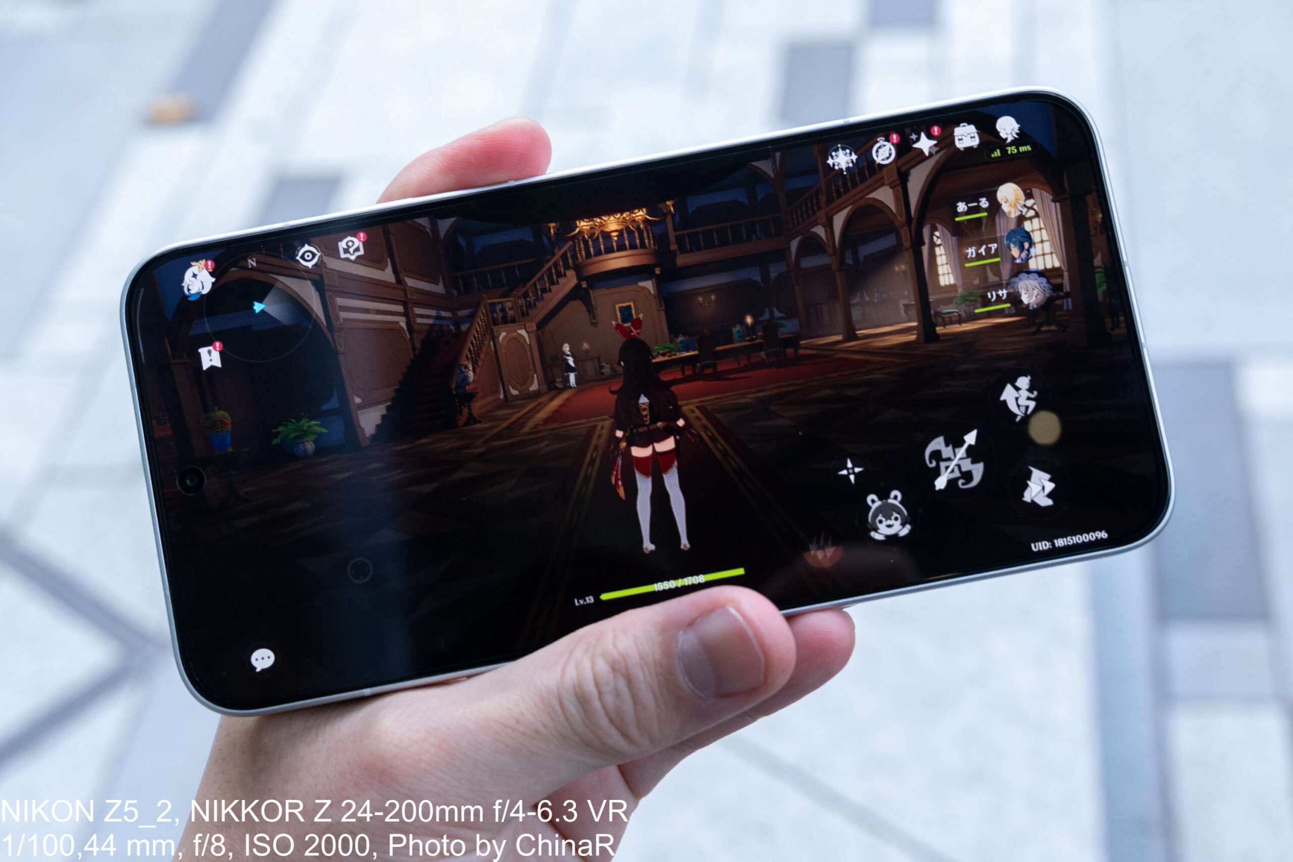屋外での視認性については、概ね良好ながら特定の時間帯ではやや見づらい場面もあったというのが正直なところ。ピーク輝度3,500nitsは数値上トップクラスとなっていますが、晴天直下で太陽光が画面に直接差し込む条件では、輝度が十分に上がってもグレアの影響で視認性がワンランク落ちる印象を受けました。とはいえ屋外で原神をプレイした際には洞窟シーンの暗部もきっちり視認でき、画面コンテンツが見えなくなって困るような場面はゼロでした。