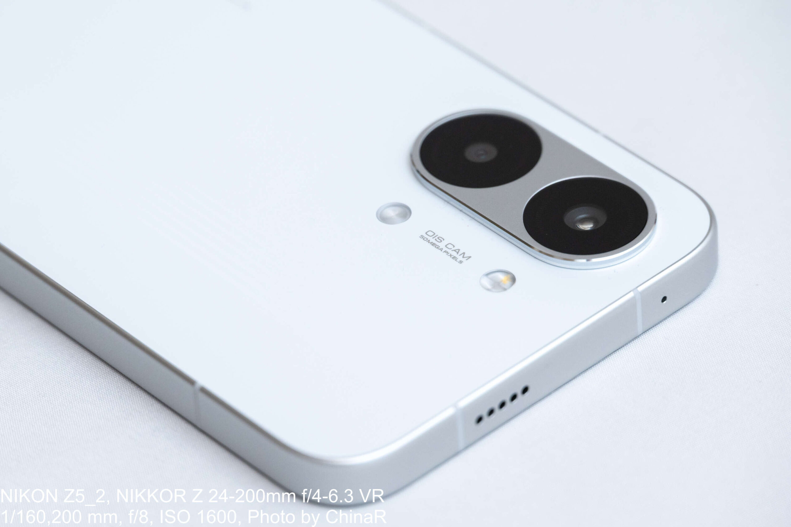 背面のカメラモジュールは大型で、レンズ周囲には「OIS CAM」「50MEGA PIXELS」の刻印を施し、メインカメラに光学式手ブレ補正を搭載していることを明確にアピール。フラッシュライトは2基構成でした。