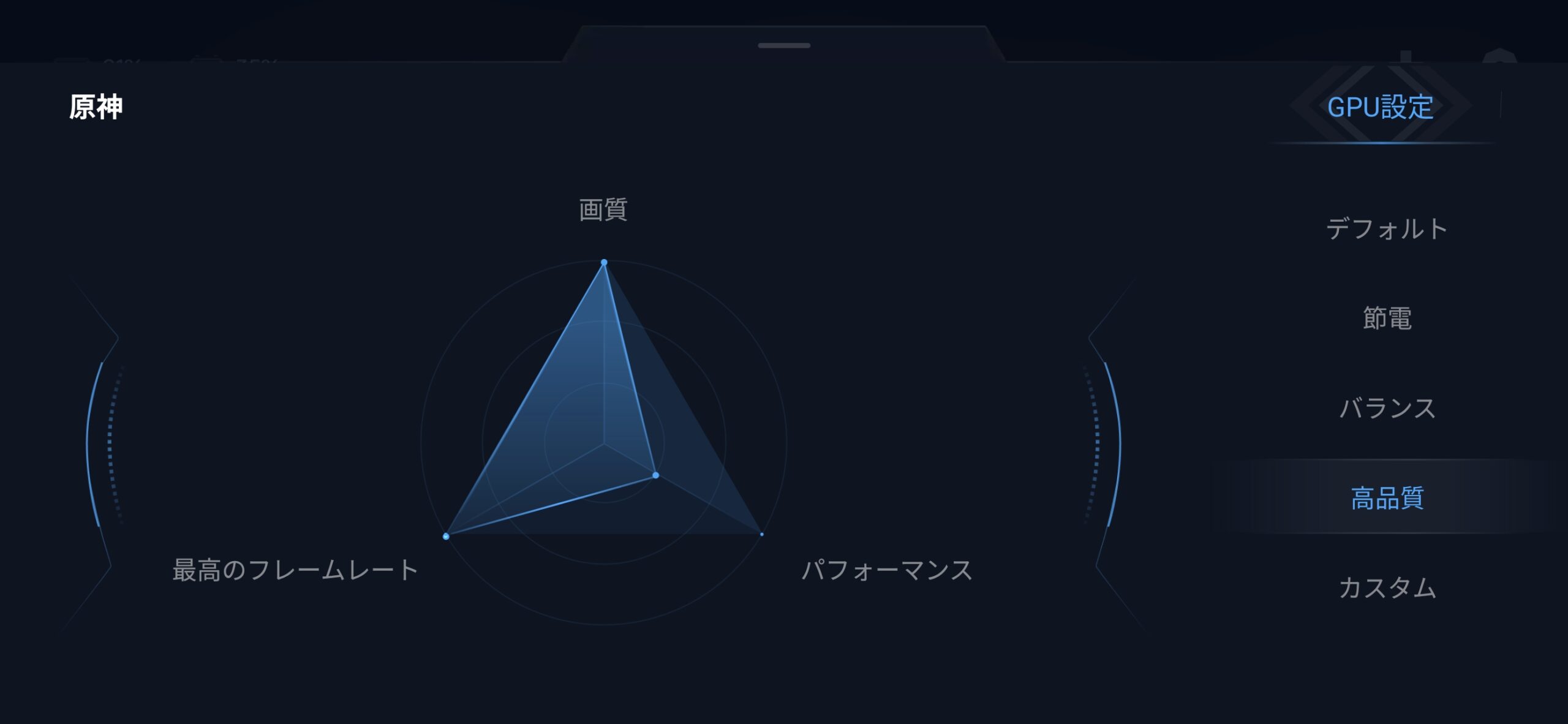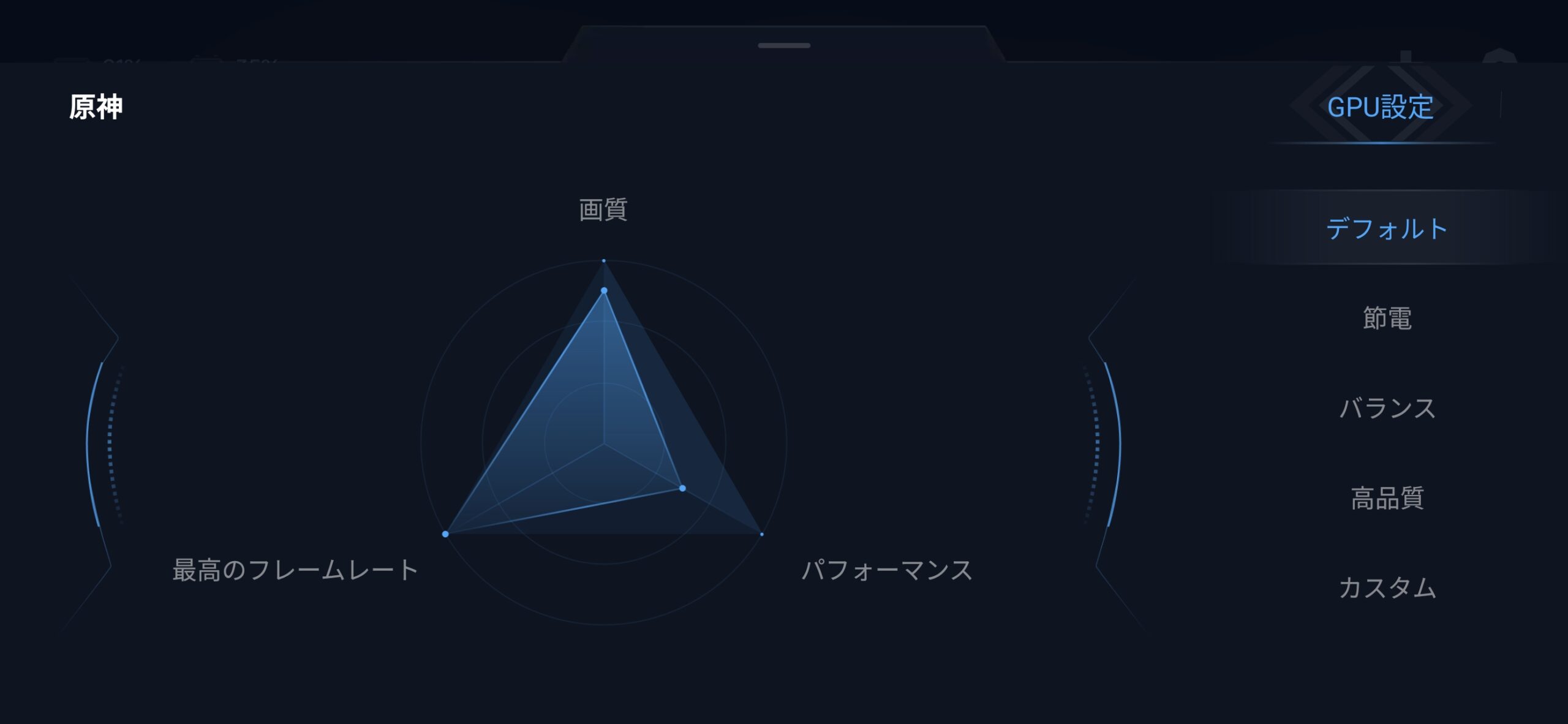 HypeOSのGame Turbo機能ではゲームごとの動作設定を変更することも可能。GPUの動作モードを変更することで高画質さを優先することも、外出時に長時間使うことを前提としてGPUの動作を抑える節電モードにすることもできました。ゲームごとに動作モードを変えられるため、原神などは高画質にしつつ単純なゲームは節電、というふうに設定を分けておくこともできます。