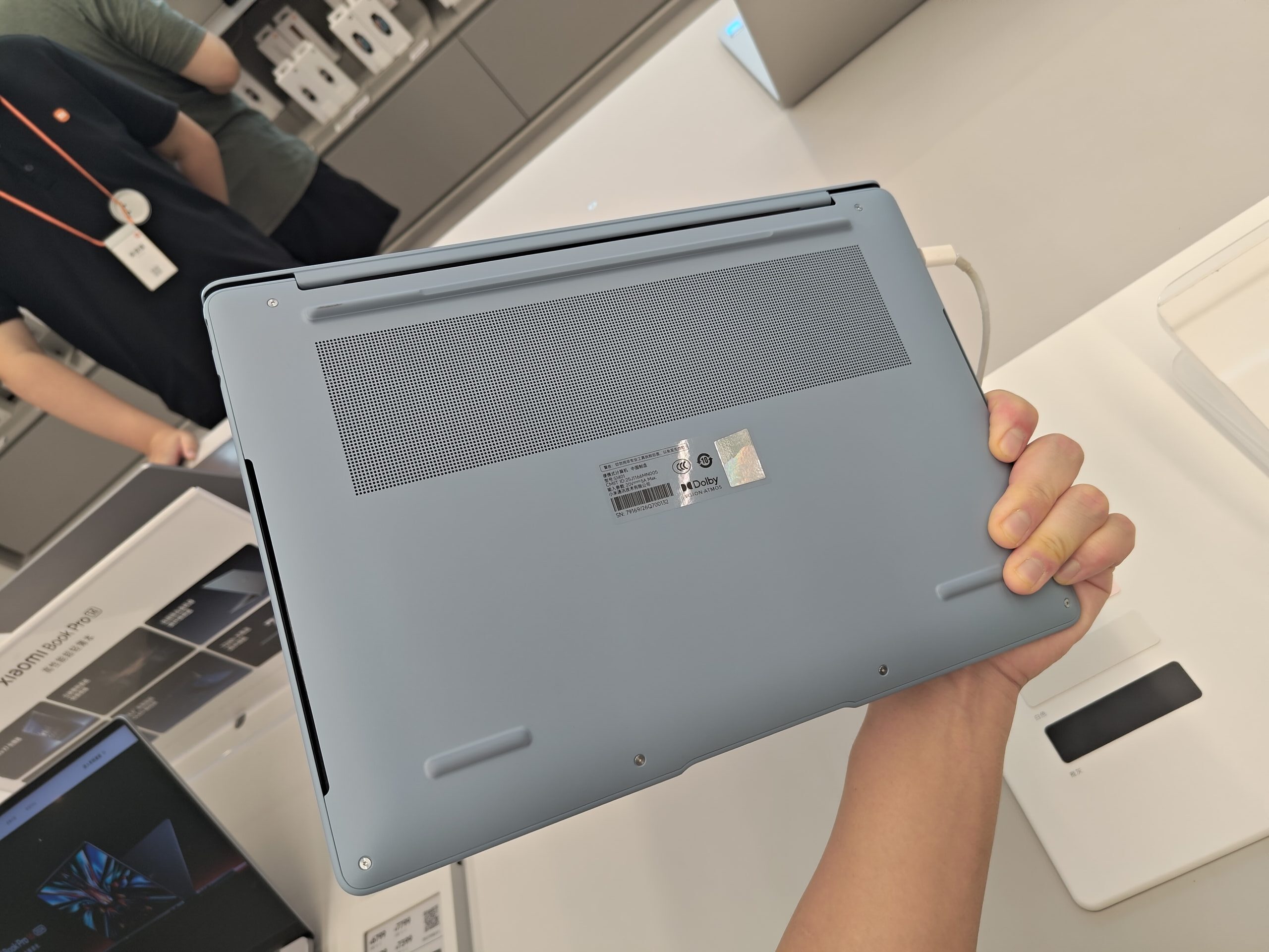 底面の作りにも差が出ていて、Xiaomi Book Pro 14は底面の約1/3が大きな吸気グリルになっており、薄型を維持しつつも放熱に重きを置いた設計が見て取れます。HONORの底面はよりシンプルで、生体模倣(バイオミメティック)の超薄型冷却設計でファンノイズを3dB低減させたとのこと。冷却思想の違いが見た目にも表れている格好です。