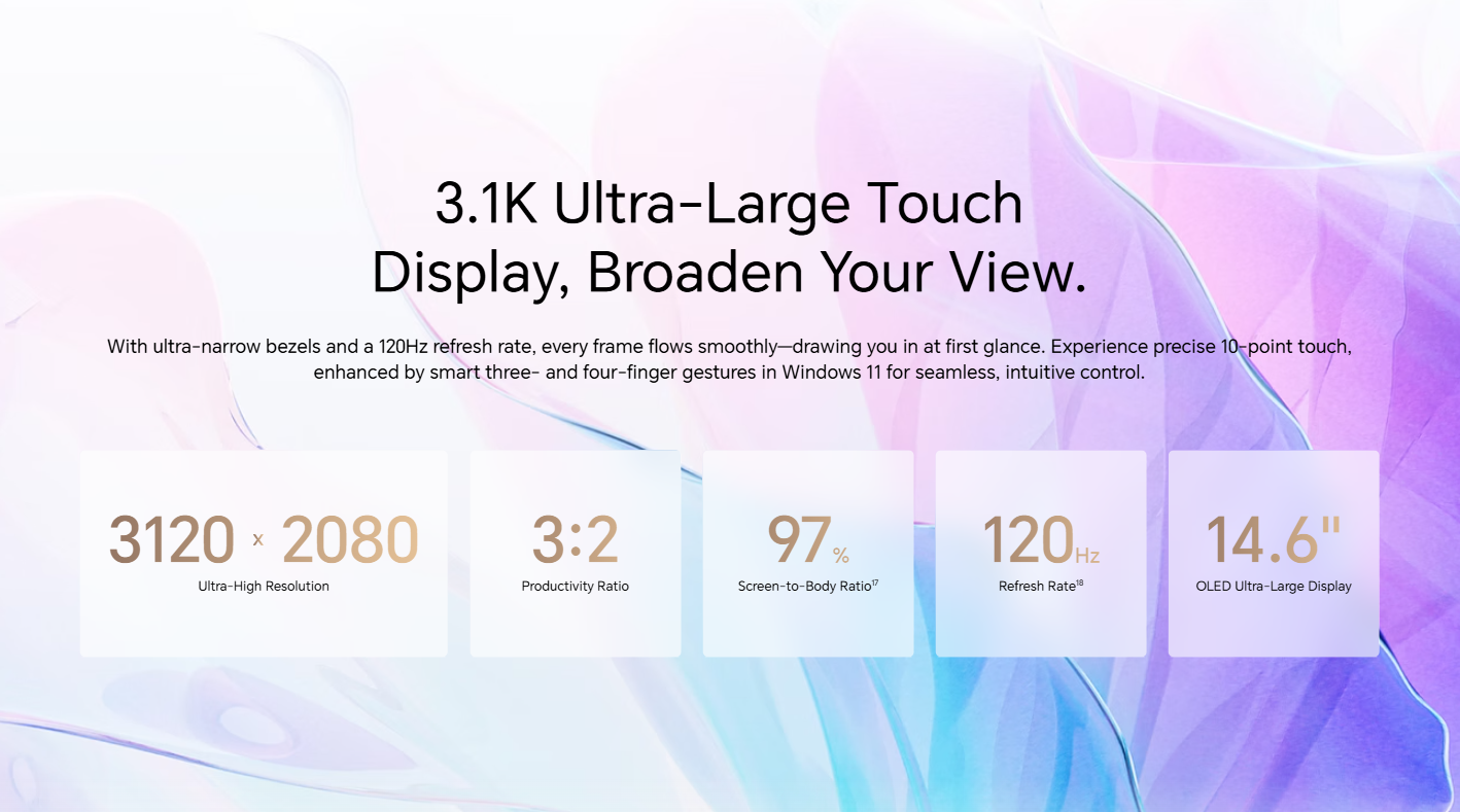 両機を並べて触ってみて、まず驚いたのがスペック表だけ見ても判別が難しいほどの仕様の近さ。14.6型・3120×2080・3:2・120Hz・タッチ・OLED・16コアCPU・32GB LPDDR5X・1TB SSD・約1kg前後・1万元以下の最上位構成と、ここまで揃うと「2026年型中華ハイエンドノートPCの公式」とでも呼びたくなる仕上がり。ユーザーの選択は「どっちが優れているか」ではなく「どっちが好きか」のフェーズに入ってきています。